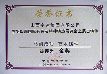 榮獲第四屆國(guó)際有色及特種鑄造展覽會(huì)金獎(jiǎng)