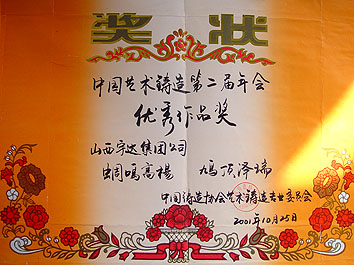 榮獲中國(guó)藝術(shù)鑄造第二屆年會(huì)優(yōu)秀作品獎(jiǎng)