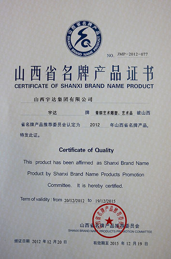 宇達(dá)榮獲"山西省名牌產(chǎn)品"稱號(hào)及"山西省質(zhì)量信譽(yù)AA級(jí)"榮譽(yù)