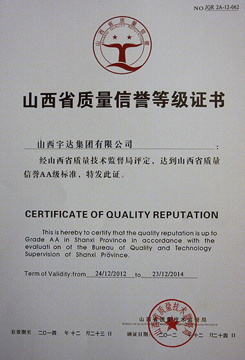 山西省質(zhì)量信譽(yù)AA級(jí)證書
