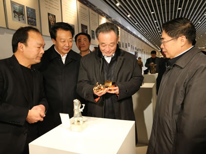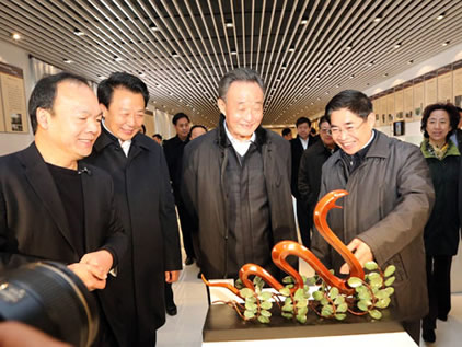 ???2012年11月19日上午,全國人大委員長吳邦國同志專機降落在運城機場。一下飛機,吳邦國委員長一行在山西省委書記袁純清、省長王君等領導陪同下直接來到山西宇達集團公司,董事長衛(wèi)恩科向首長簡要介紹了宇達集團青銅文化產業(yè)的發(fā)展情況,首長詳細詢問了青銅藝術鑄造配方比例和生產工藝,在宇達創(chuàng)意高檔青銅藝術禮品館,首長欣賞著一件件宇達創(chuàng)意出品流光溢彩的高檔青銅藝術禮品,連口稱贊!衛(wèi)恩科董事長當場饋贈了一套書畫寶套裝禮品給首長……