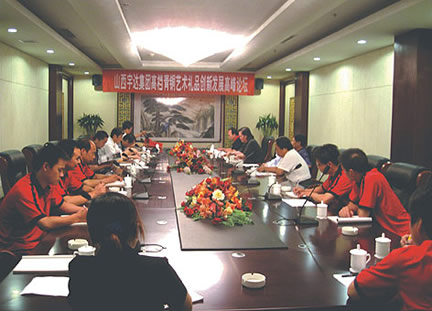 2008年7月25日-27日,旨在立足現(xiàn)代科技,傳承保護傳統(tǒng)工藝技術(shù),將優(yōu)秀的古代傳統(tǒng)工藝技術(shù)、成果借助當代技藝應用于山西宇達青銅藝術(shù)禮品,提升其技術(shù)、藝術(shù)、市場附加值的宇達集團高檔青銅藝術(shù)禮品創(chuàng)新發(fā)展高峰論壇在山西省運城市金鑫大酒店成功舉辦。來自全國各地的專家學者、工藝美術(shù)大師等9人參加了此次高峰論壇。并就宇達集團青銅藝術(shù)禮品創(chuàng)新模式和組織模式達成初步議定。
